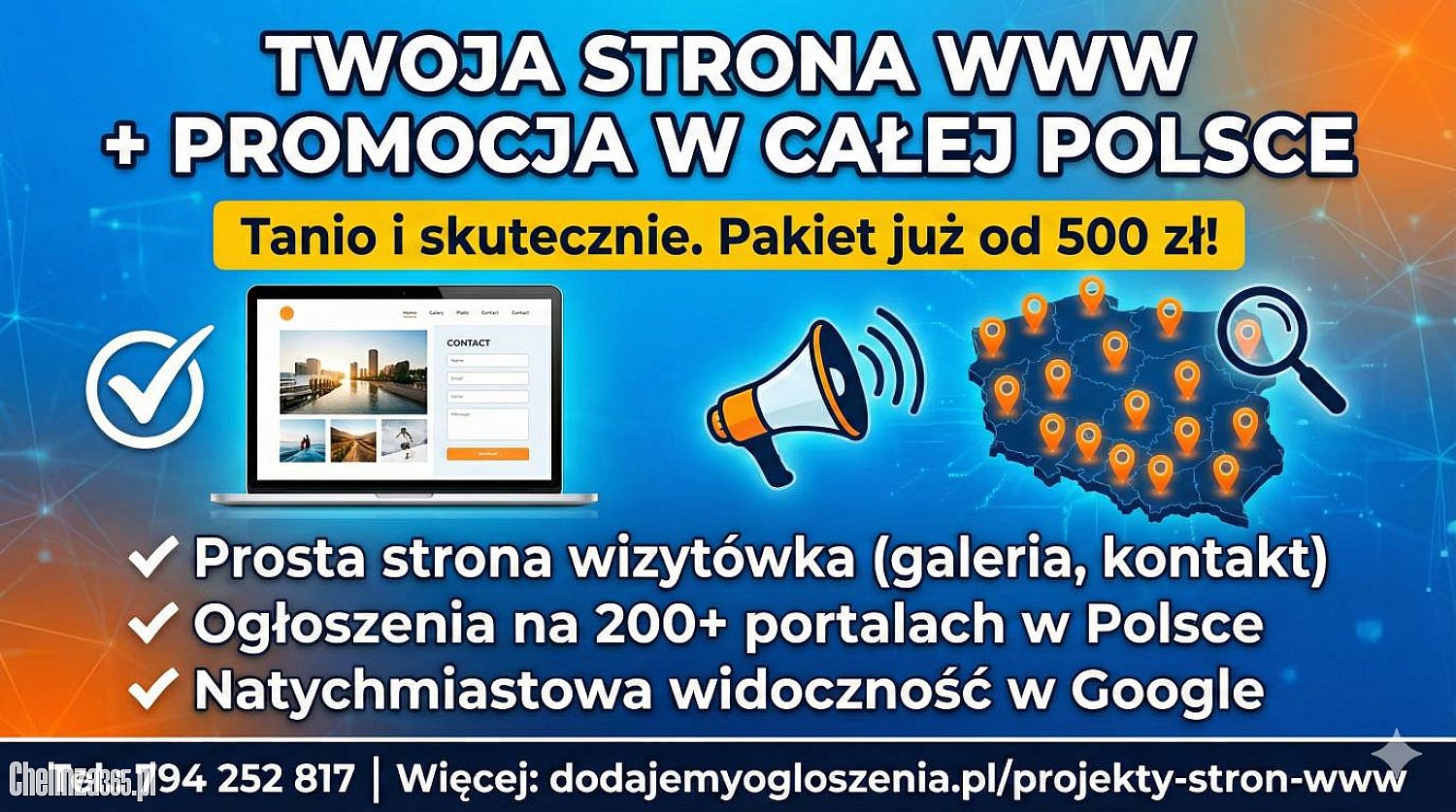 Tanio i skutecznie - Twoja strona + promocja w całej Polsce w jednym pakiecie.